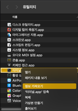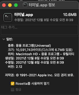 Terminal을 Rosetta를 사용하여 실행해줍니다.
