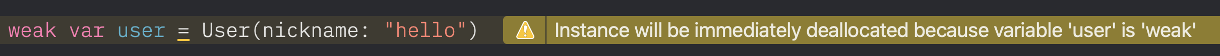 Class나 Struct의 property로써 weak를 사용하지 않고, variable로써 사용하면 할당하는 즉시 nil이 된다.