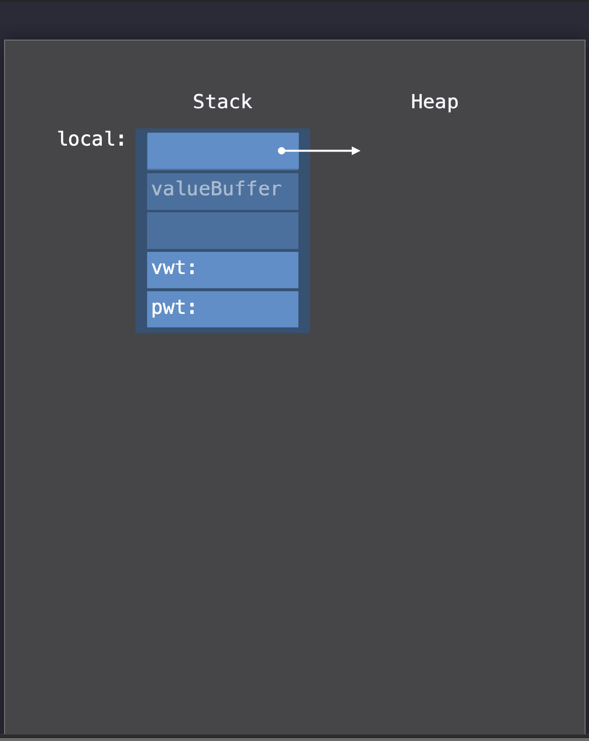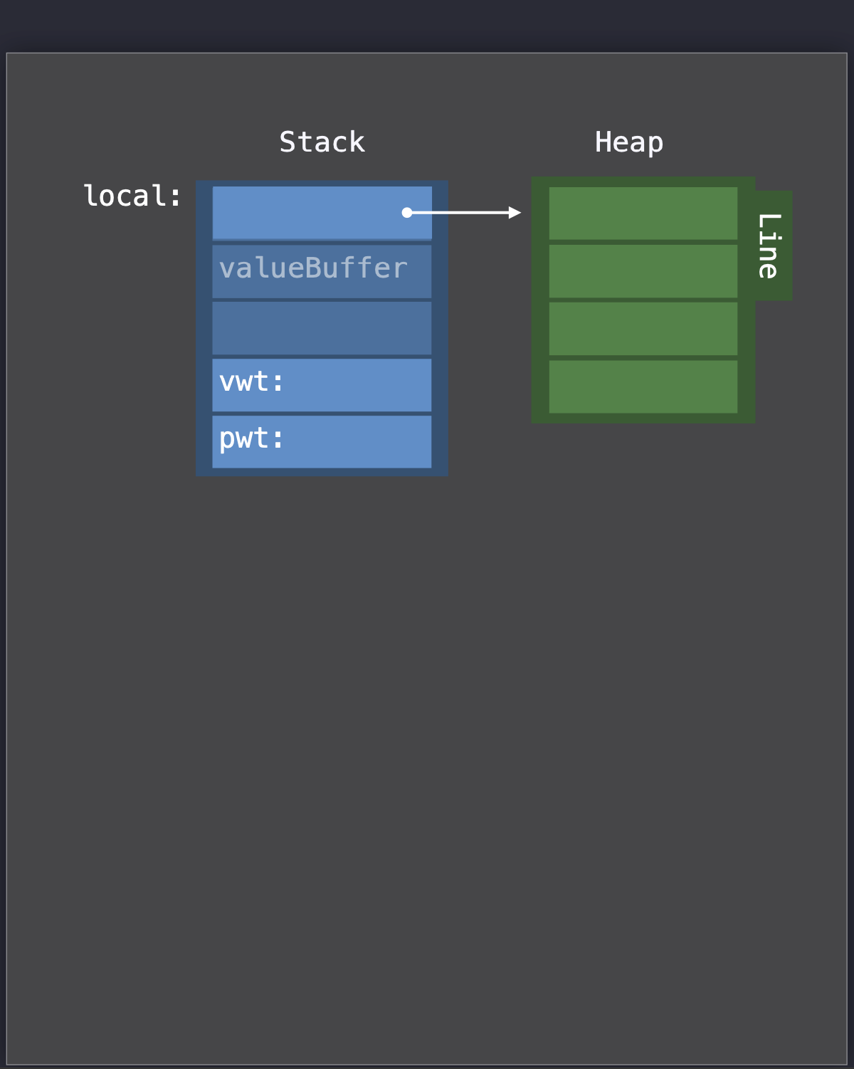 * VWT과 PWT는 Heap에 할당됩니다. existential container에는 그 포인터가 저장됩니다.