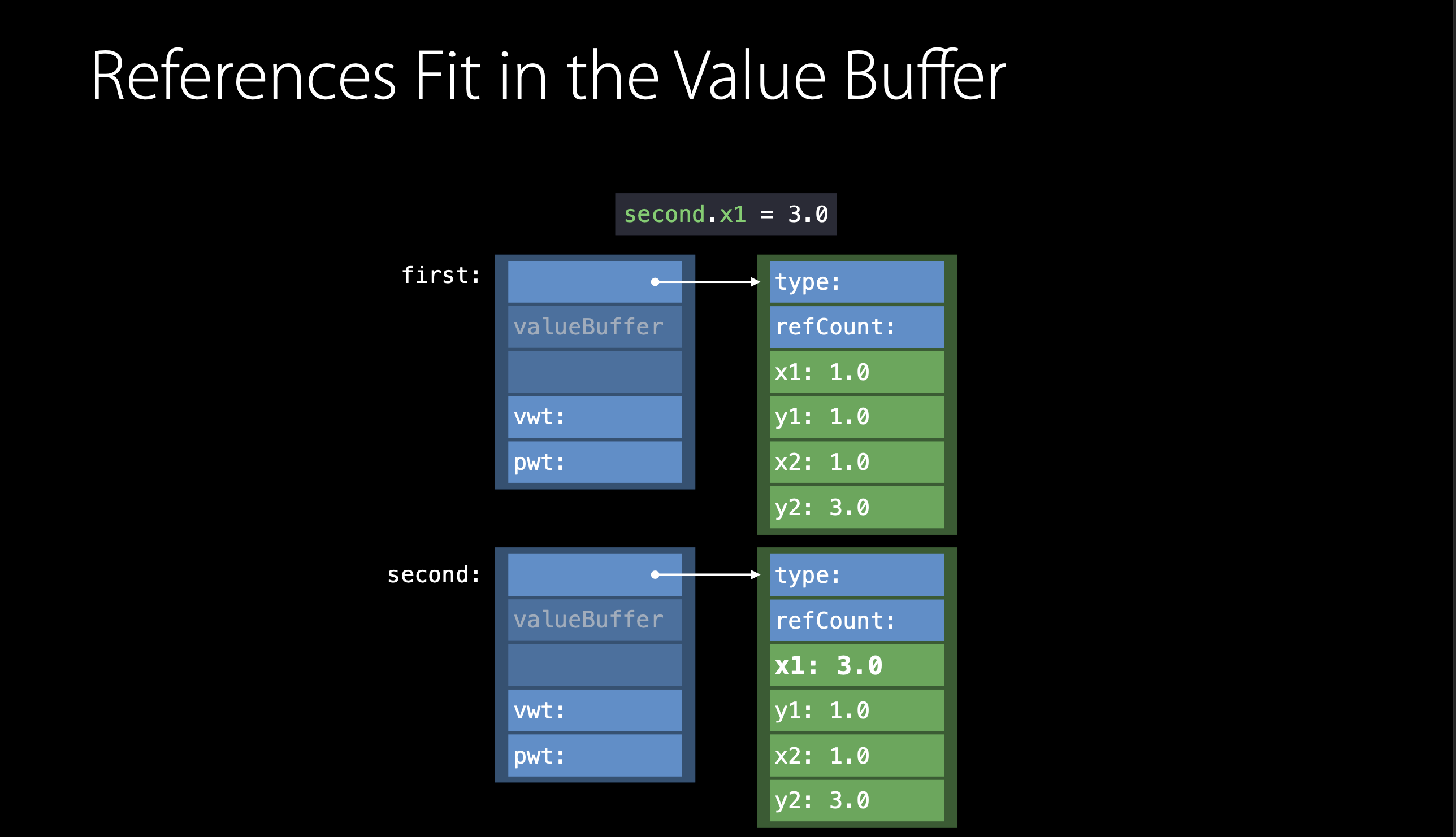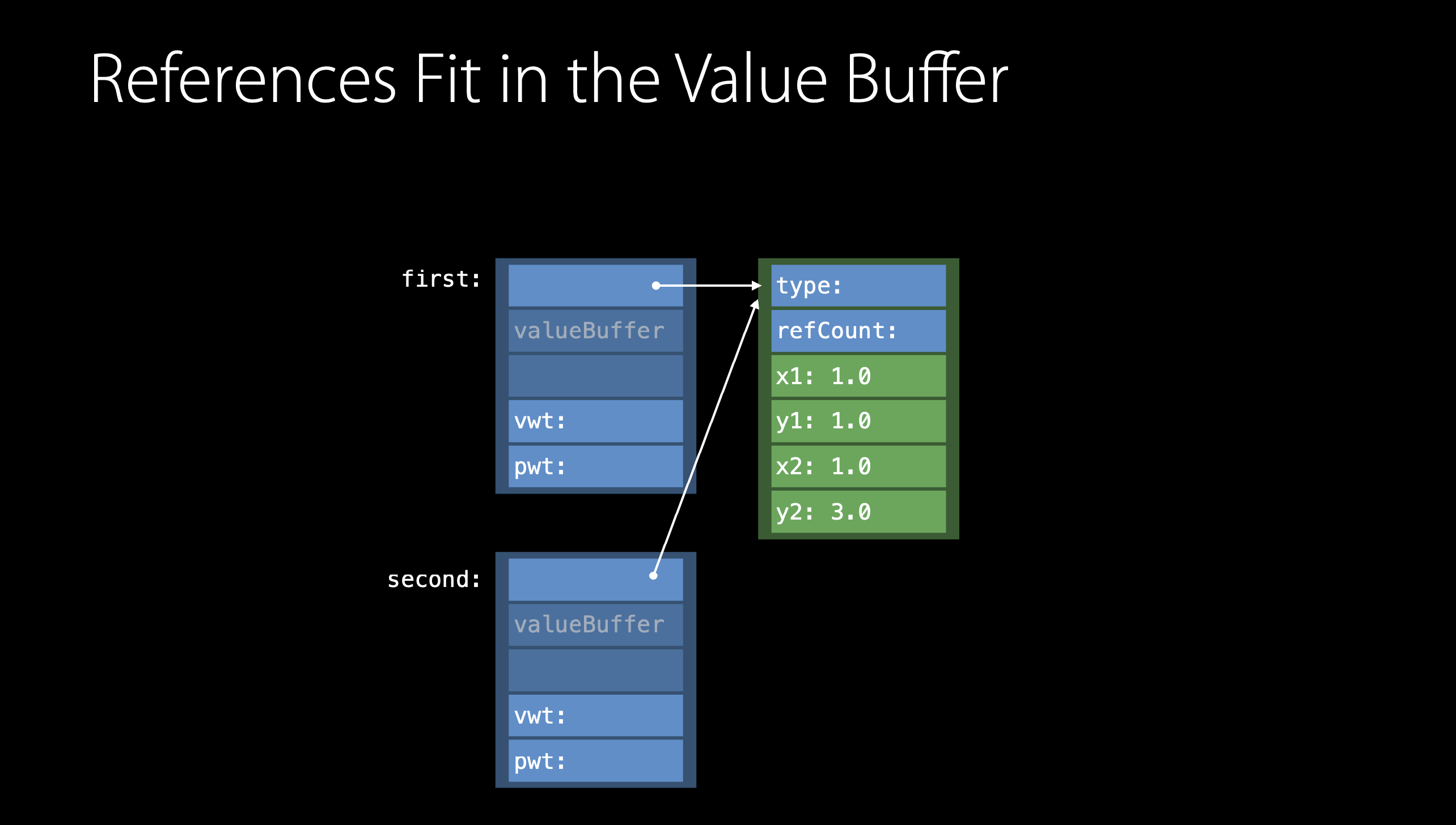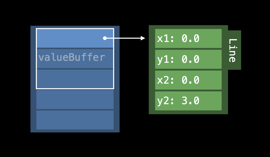 inline buffer(valueBuffer)에 알맞게 들어가는 Point의 경우에는 existential container의 시작 주소가 value의 주소에 해당할 것입니다.