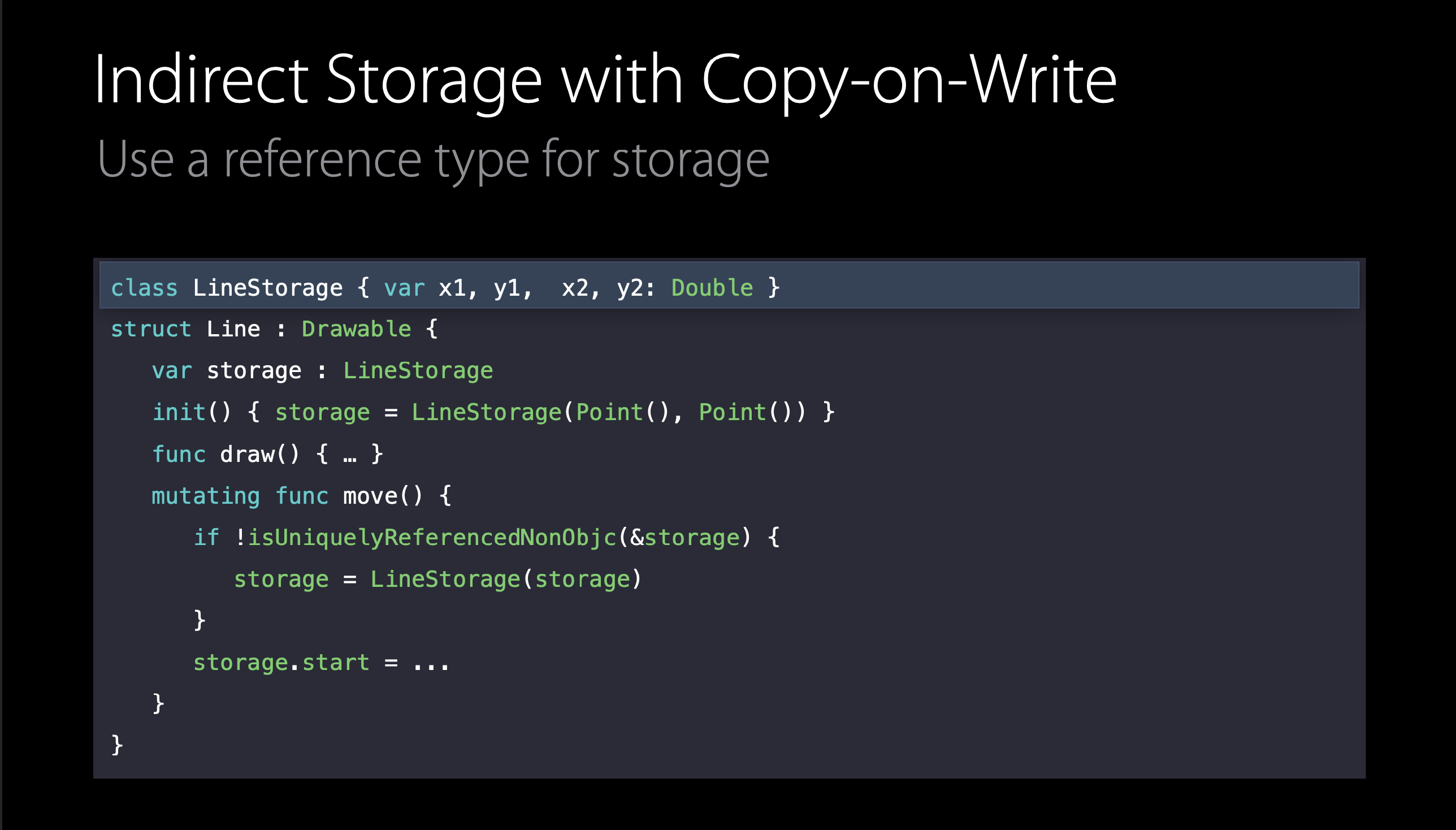 Line 내부에 프로퍼티들을 직접 저장하는 것 대신에, LineStorage라는 class를 만들어 Line의 프로퍼티로는 LineStorage 참조 하나만 갖고 있도록 합니다.